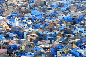 La cité indienne est surnommée « la ville bleue » car la plupart des maisons sont peintes de cette couleur, qui indiquait que ces habitations appartenaient à des Brahmanes, la caste la plus haute en Inde. Mais le bleu permet aussi de protéger de la chaleur et de repousser les moustiques.