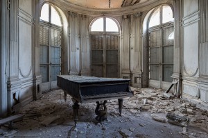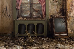 Puis, de retour à Paris, il se lance dans la difficile chasse des lieux abandonnés. « Trouver des endroits abandonnés, ni squattés, ni abîmés, n’est pas facile. Les endroits appartiennent toujours à des particuliers, parfois même à l’Etat ; il y a donc une part d’illégalité. On peut déceler des indices sur des images déjà prises, sur le terrain en regardant autour de soi, ou encore sur Internet, dans les dépêches. Ensuite, il faut essayer de trouver comment y pénétrer. Personnellement, je ne force jamais une entrée, je cherche une ouverture. Je déplace rarement les objets essayant de témoigner au mieux de l’état de l’endroit », détaille-t-il au sujet de son processus artistique.
