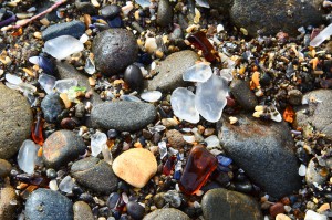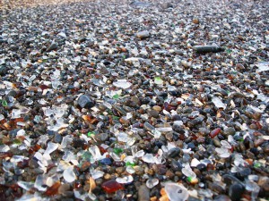 Aux Etats-Unis, Glass Beach est une plage connue pour être colorée par ce qu’on appelle les verres de mer, arrivés suite à des années de déversement d’ordures dans la zone côtière du nord de la ville. Ces morceaux de verre sont de couleurs, tailles et formes diverses et ont été polis par le brassage avec le sable et par les chocs avec les galets et les rochers.