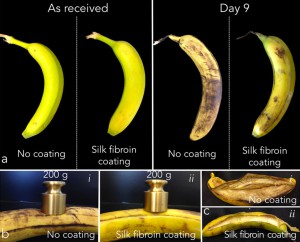 Des chercheurs de l’université Tufts, dans l’Etat américain du Massachusetts, ont donc planché sur la conception d’un revêtement extraordinaire, qui permet de conserver des fruits et légumes sans réfrigération. Pour ce faire, ils ont utilisé de la soie, un matériau très résistant et déjà créé dans la nature par différentes espèces, comme les araignées, papillons et autres insectes.