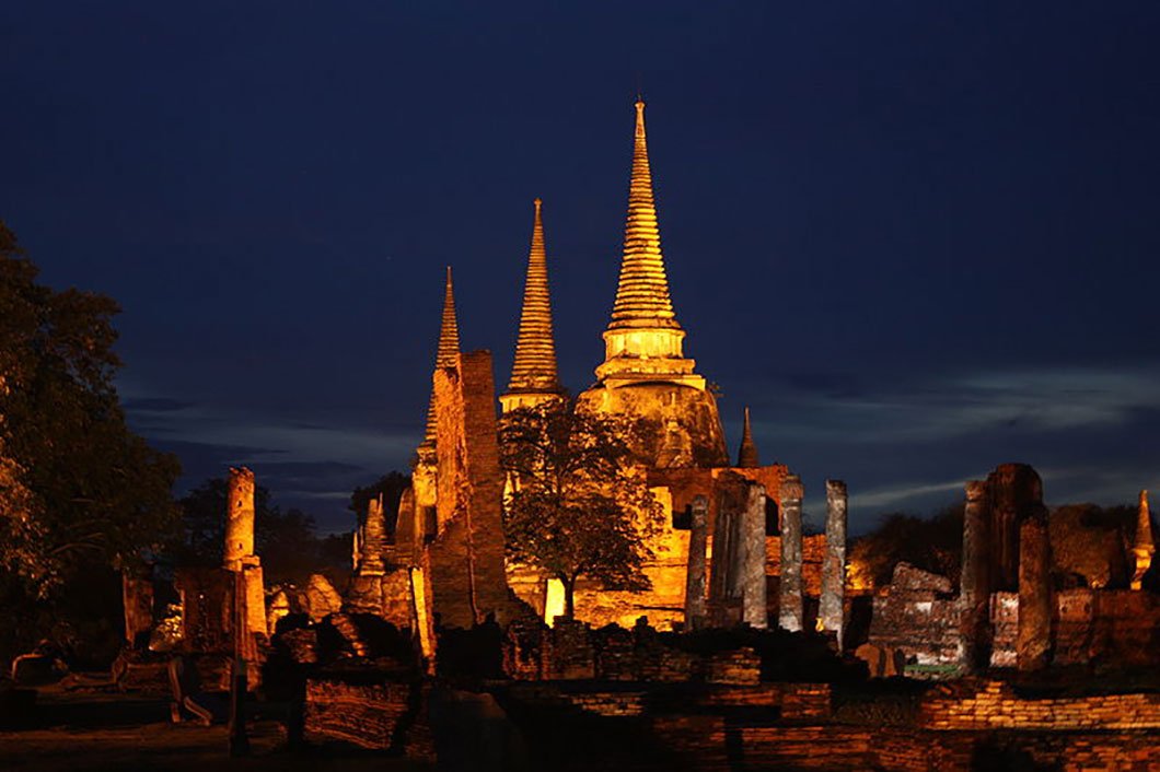 Wat Phra Si Sanphet, ou « le temple du Bouddha Si Sanphet », était le temple le plus important du royaume d’Ayutthaya. Faisant partie du complexe du palais royal d’Ayuthaya, le très grand monastère avec des dizaines de structures était utilisé par les rois d’Ayutthaya uniquement. C’était donc un temple royal sans moines résidents. Construit au milieu du XVIIe siècle, le temple est constitué d’une plate-forme surélevée supportant trois très grands stupas en forme de cloche dorée, trois mandapas dorés, un énorme viharn renfermant une stature de Bouddha doré de 16 mètres de haut, ainsi que des dizaines de plus petits chédis et chapelles.