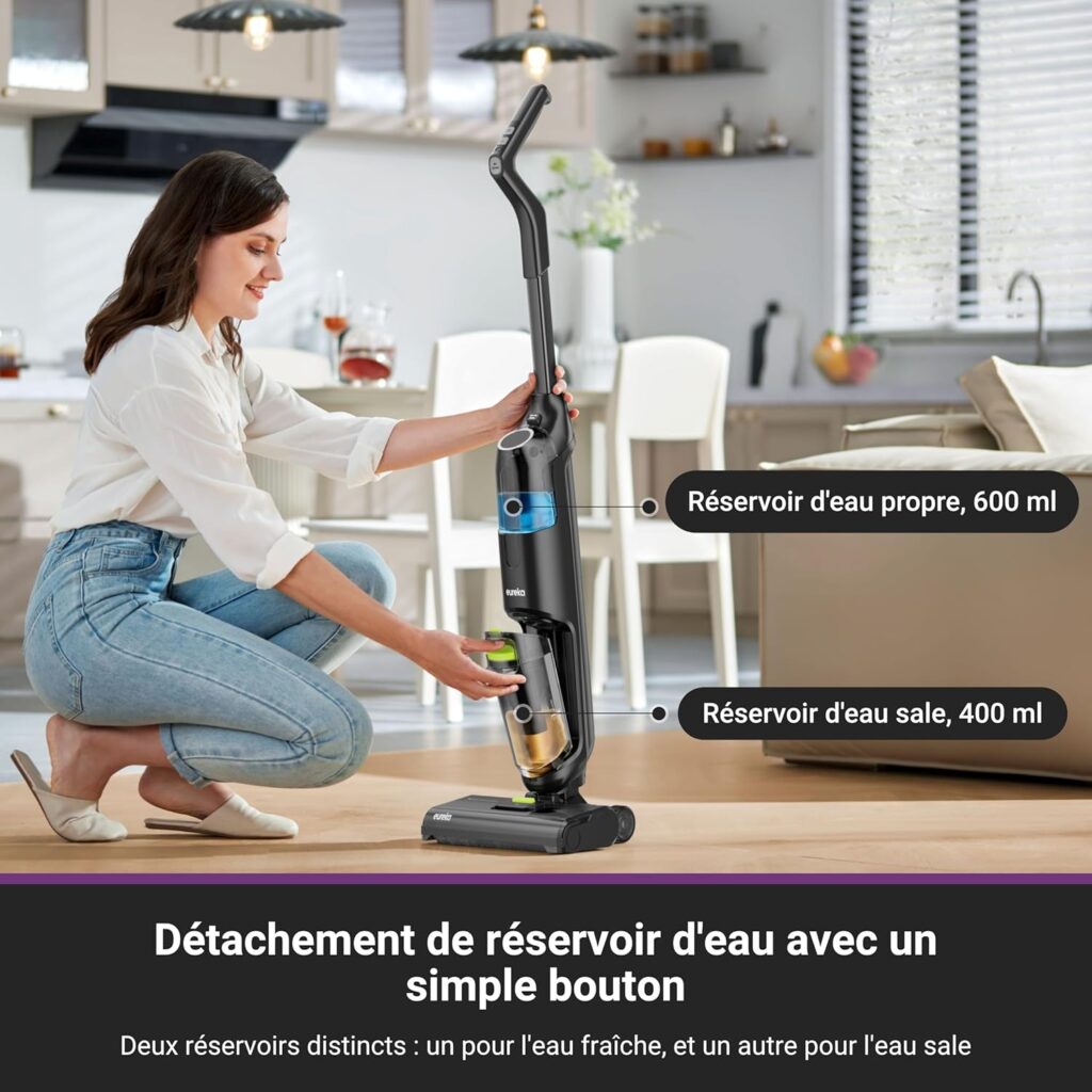 Cet aspirateur laveur est conçu avec un réservoir d’eau propre de 600 ml associé à un réservoir d’eau sale de 400 ml, empêchant ainsi toute contamination croisée. Amélioré avec une puissante solution désinfectante, il neutralise efficacement les odeurs, ce qui le rend exceptionnellement adapté aux propriétaires d’animaux.