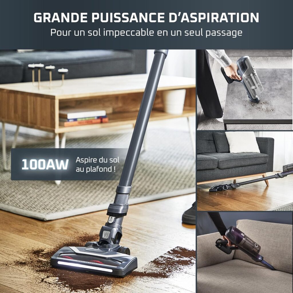 L’aspirateur balai sans fil X-PERT 6.60 de Rowenta garantit une belle expérience d’aspiration grâce à sa technologie de pointe dans un format compact et léger. À vous le meilleur sans compromis ! Il propose la combinaison idéale pour nettoyer votre maison sans effort : un puissant moteur de 100 W pour un nettoyage facile en profondeur, une batterie amovible offrant 45 minutes d’autonomie (en position aspirateur à main et mode Eco) et bien plus encore… Le tout dans un appareil léger de 1.4 kg (en position aspirateur à main).