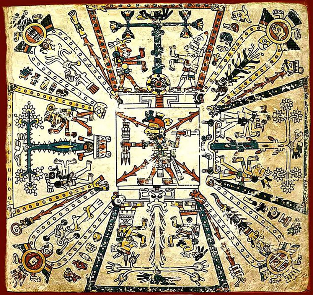 La religion aztèque se basait en grande partie sur la cosmologie. D’après leur interprétation de la cosmologie, le monde aztèque se composait de trois parties principales : le monde terrestre sur lequel vivaient les humains, un monde souterrain appartenant aux morts et le plan supérieur dans le ciel. La Terre et le monde inférieur étaient tous deux ouverts aux humains, alors que le plan supérieur était réservé aux dieux. L’existence était alors envisagée comme étant à cheval sur les deux mondes accessibles aux humains, dans un cycle de naissance, de vie, de mort et de renaissance. Ainsi, les Aztèques croyaient que le soleil demeurait la nuit dans le monde souterrain et renaissait le matin.