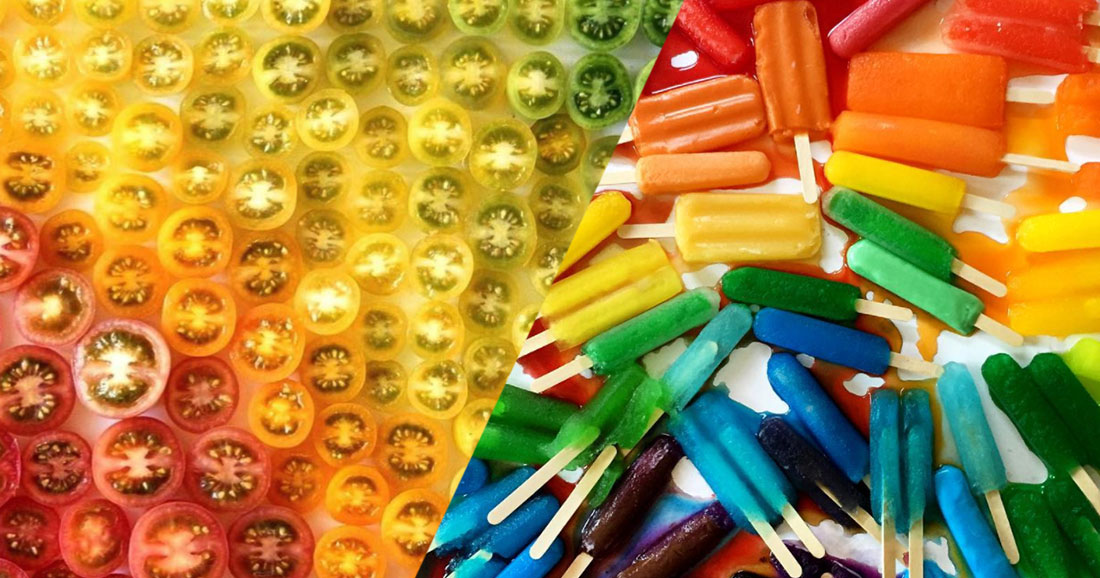 Chacune des réalisations de Brittany Wright est un régal pour les yeux ! En assemblant des feuilles, des fruits, des légumes, des bonbons, des aromates, des épices et tout un tas d’autres aliments, elle réalise de somptueux arc-en-ciel, avec toutes les nuances possibles et imaginables !