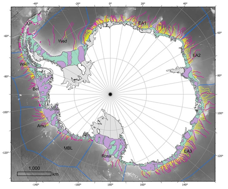 L’analyse de relevés détaillés du fond marin autour de l’Antarctique a conduit à l’identification de 332 nouvelles failles géantes, multipliant par cinq leur nombre connu dans cette région du globe.