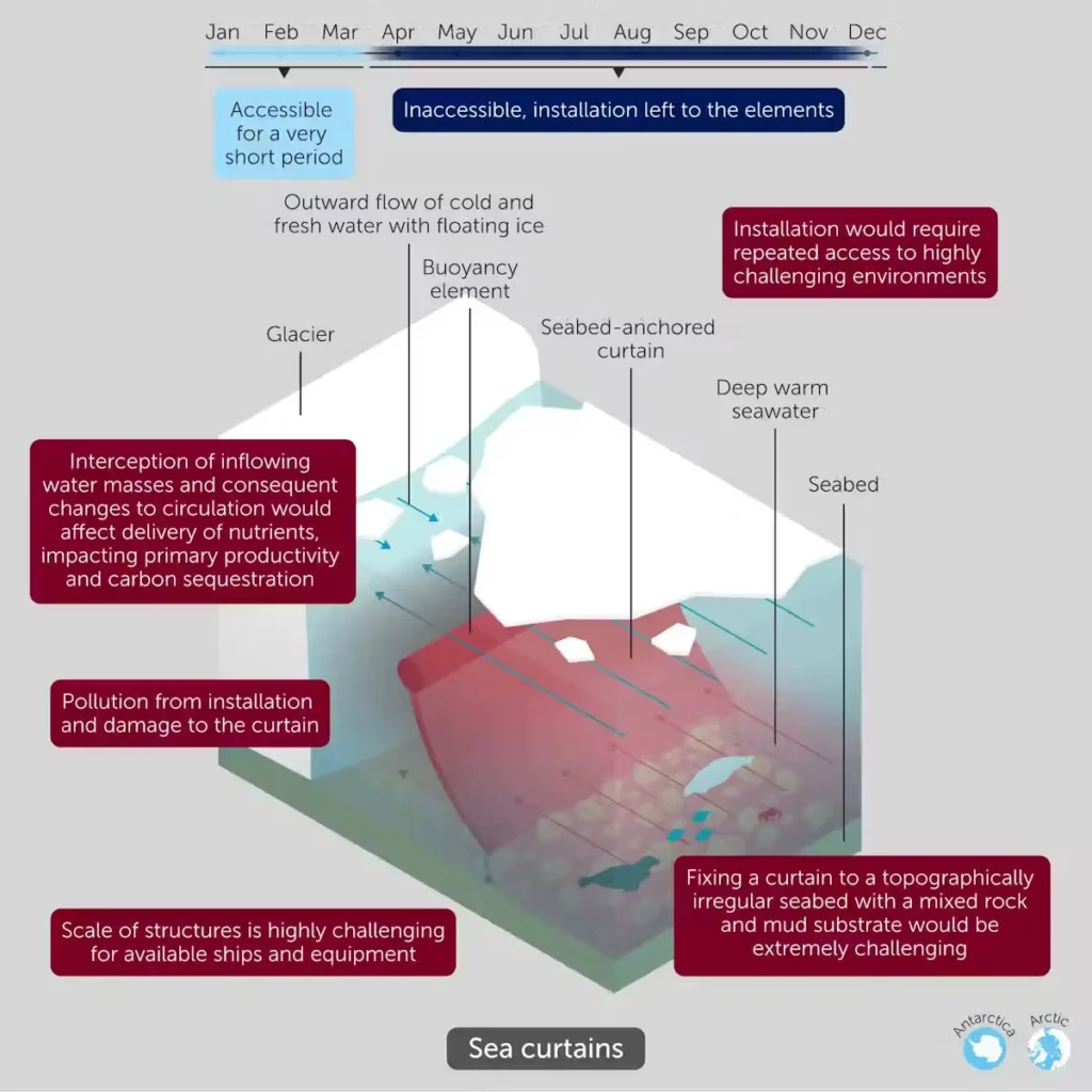 De surcroît, les rideaux sous-marins coûteraient environ un milliard de dollars par kilomètre, sans parler de leur impact sur la faune marine.