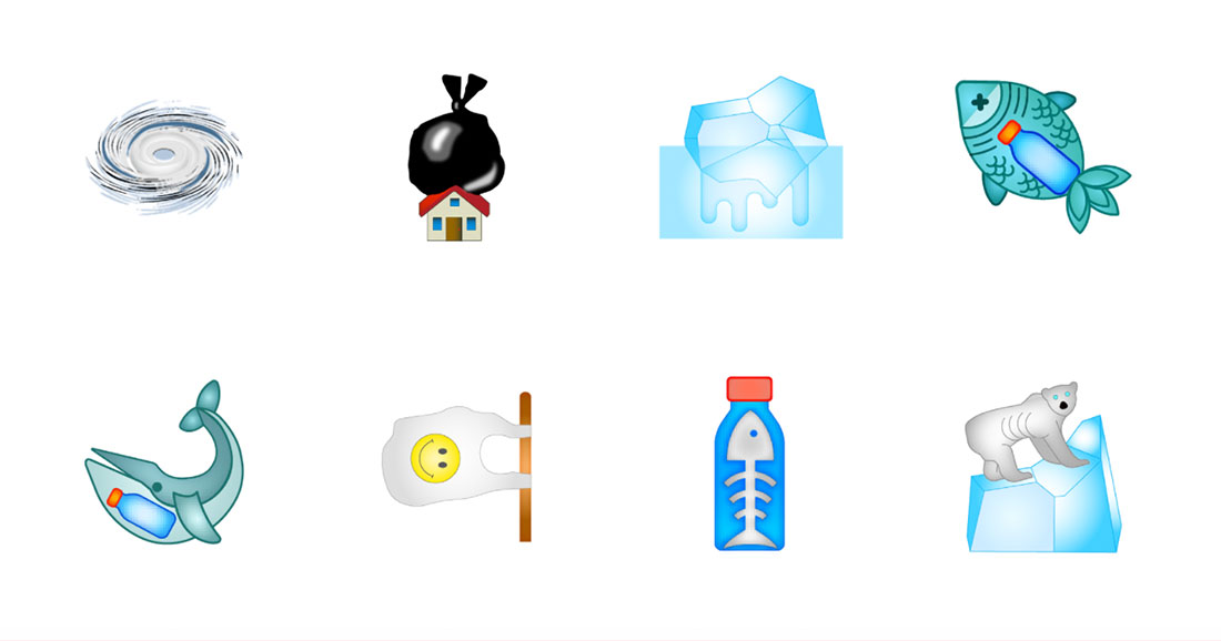 Un arbre qui prend feu, un ours polaire affamé, un squelette de poisson dans une bouteille vide… Tous ces problèmes environnementaux sont repris avec Climoji sous forme d’émoticones.
