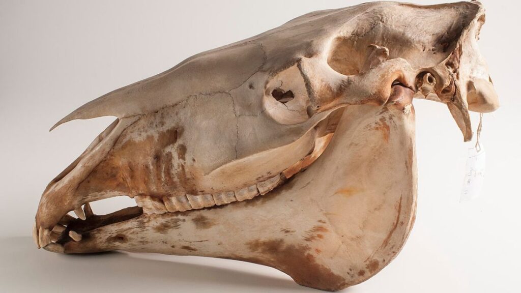 Le résultat ? Un crâne entier, remarquablement intact, appartenant à un jeune cheval préhistorique. Selon les premières observations, la présence de canines encore partiellement sorties indique que l’animal était un mâle, probablement adolescent au moment de sa mort.