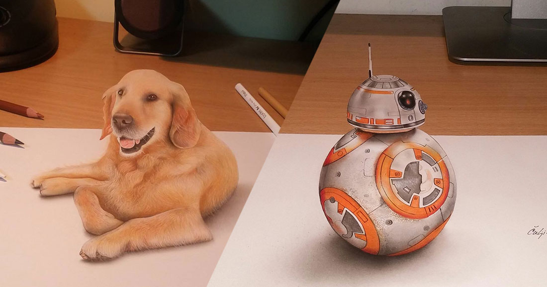 Il y a 4 ans, Nikola Culjic s’est plongé dans le dessin à un rythme intensif. Autodidacte, l’artiste serbe de 31 ans a développé une technique bien particulière. Il réalise des dessins en 3D tellement vraisemblables qu’ils semblent sortir du papier pour prendre vie. Pour faire vivre ses œuvres, le dessinateur utilise seulement des stylos et des marqueurs. Nikola a appris a jouer avec les perspectives et la lumière afin de rendre ses dessins aussi vraisemblables que nature.