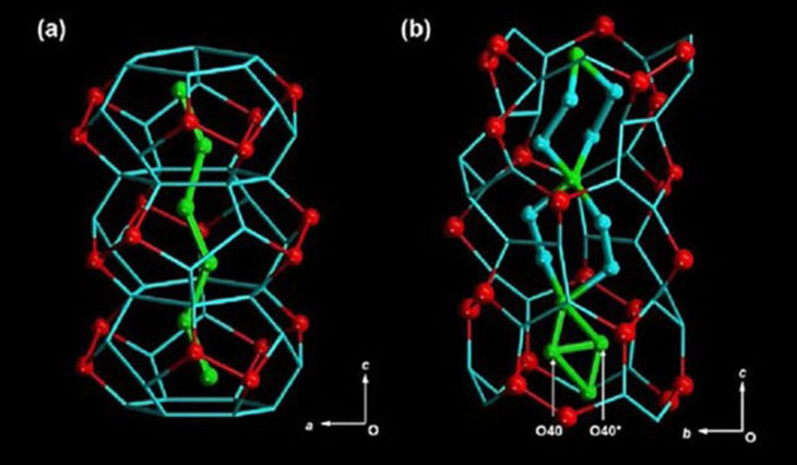 Les expériences réalisées ont impliqué de « l’eau lourde », dans laquelle les atomes d’hydrogène sont remplacés par du deutérium, isotope de l’hydrogène au coeur des réactions de fusion nucléaire, dont le noyau contient un seul neutron. Ce « D2O » a été injecté dans les minuscules canaux (1,6 nanomètre de large) de cristaux en forme de bâtonnets, qui ont été congelés puis lentement réchauffés.