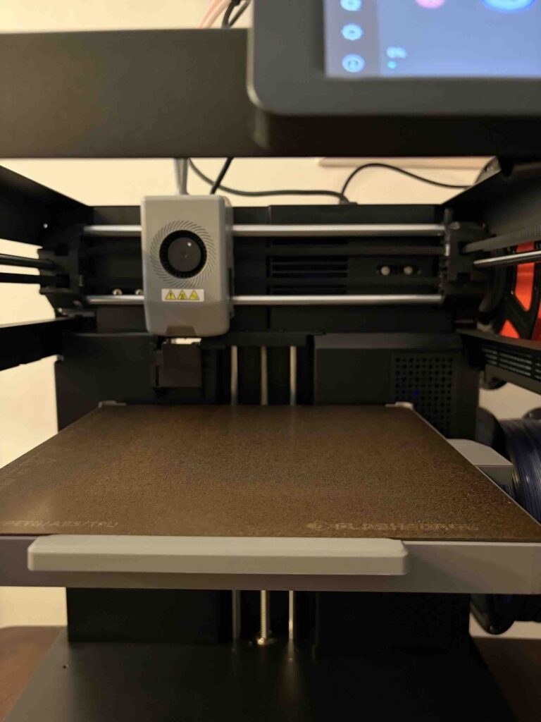 Le nivellement du plateau est assisté, ce qui simplifie la phase de calibration. Le chargement des filaments dans le module multi-couleurs se fait de manière intuitive, avec un accompagnement à l’écran.