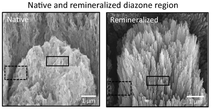 Connu sous le nom d’épitaxie, ce processus implique une orientation des nouveaux cristaux correspondant strictement à celle des structures d’origine. Pouvant atteindre jusqu’à 10 micromètres d’épaisseur, ceux-ci s’intègrent parfaitement dans le tissu naturel de la dent, restaurant ses fonctions protectrices. « Cela ne prend pas plus d’une semaine », souligne Mata.