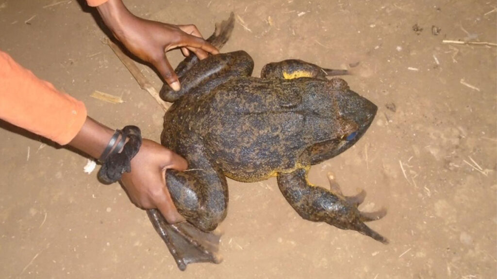 Aujourd’hui considérée comme en voie de disparition, l’espèce a vu ses populations décliner significativement au cours des dernières décennies. En cause : la pollution, la déforestation et le braconnage (prisée pour sa chair dans certaines régions d’Afrique de l’Ouest, cette grenouille géante est également vendue à des zoos ou des particuliers).