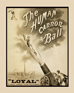 En raison de son caractère spectaculaire et des forts risques liés à sa pratique, l’homme-canon devient une attraction incontournable en Amérique : Barnum et Yankee Robinson, réputés pour être les plus grands cirques de l’époque, ne tardent pas à l’adopter et à en faire le numéro central de leurs représentations.