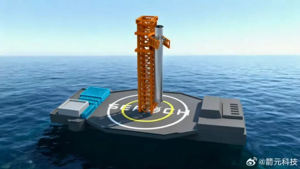 Ce 25 novembre 2025, une présentation PowerPoint partagée sur Weibo par le compte China航天 montre le projet de la société chinoise Space Epoch (ou Sepoch). Le concept ? Installer une tour de capture sur une plateforme maritime flottante, à la manière d’une barge autonome.