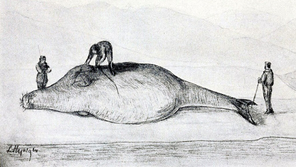 Quatre espèces de siréniens (lamantins et dugong) évoluent aujourd’hui dans les eaux du globe. Mais au XVIIIe siècle, une cinquième évoluait près des côtes des îles du Commandeur, dans la glaciale mer de Béring : la rhytine de Steller (Hydrodamalis gigas), appartenant à la famille des dugongidés.