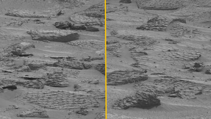 « Un certain nombre des roches dans les régions traversées par Curiosity présentaient cette texture intrigante en nid d’abeille, avec des milliers de polygones s’entrecroisant », détaille Abigail Fraeman, également du JPL. « Mais elles semblaient nettement moins abondantes. »