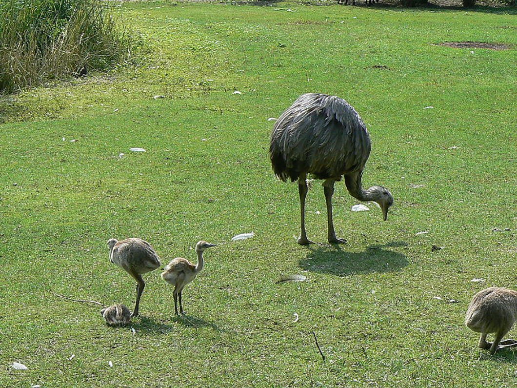 Le grand nandou est le plus grand de tous les oiseaux d’Amérique du Sud, et est lié aux autruches et aux émeus. Ces oiseaux sont incapables de voler et utilisent leurs longues pattes puissantes pour se déplacer. Bien que leurs grandes ailes soient inutiles pour le vol, elles sont utilisées pour l’équilibre et pour changer de direction lorsque l’oiseau court. L’animal pèse dans les 27 kilogrammes et mesure généralement plus de 1,2 mètre. L’une des particularités de l’animal étant que les femelles pondent tous dans le même nid, qui peut alors contenir jusqu’à 50 œufs.