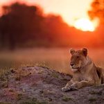 Cette lionne, posée, au coucher de soleil, paraît d’une grande sérénité. Ce cliché d’une grande …