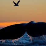 Une baleine et une mouette via Shutterstock Instant poésie. Une légère mouette vole au-dessus de …