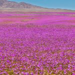 Une floraison du désert s’est récemment produite en Arabie saoudite, après qu’une pluie hivernale plus abondante que d’habitude soit tombée sur la péninsule arabique.