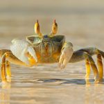 Quand il se sent menacé, le crabe fantôme ou ocypode fait s’entrechoquer les dents qu’il …