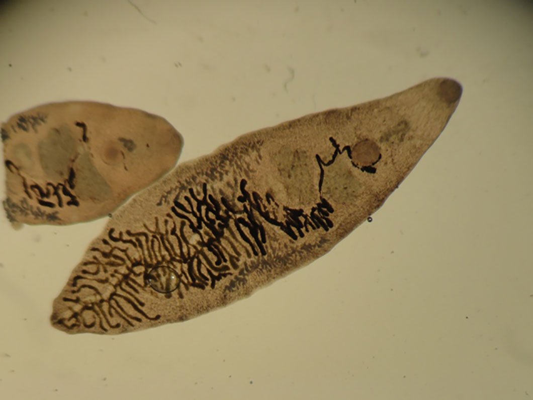 Le Dicrocoelium dendriticum, ou plus communément connu sous le nom de petite douve du foie, est un petit vert plat parasite qui a tendance à vivre chez les bovins ou d’autres mammifères de pâturage, mais rassurez-vous, il n’arrive pas à transformer les vaches en zombies. En fait, les œufs de ces parasites sont généralement contenus dans les excréments des vaches ou des autres mammifères hôtes. Ce sont ces œufs qui sont ingérés par des escargots. Une fois que les œufs éclosent à l’intérieur des escargots, ceux-ci sont rejetés par leur le mollusque du mucus. Ce mucus contenant les larves est ensuite ingéré par des fourmis, et ce sont les cerveaux de celles-ci que le ver contrôle pour en faire des zombies esclaves. Le but de la petite douve du foie en contrôlant les fourmis est de trouver des endroits propices où ils peuvent être mangés par des mammifères afin de recommencer tranquillement leur cycle de vie.