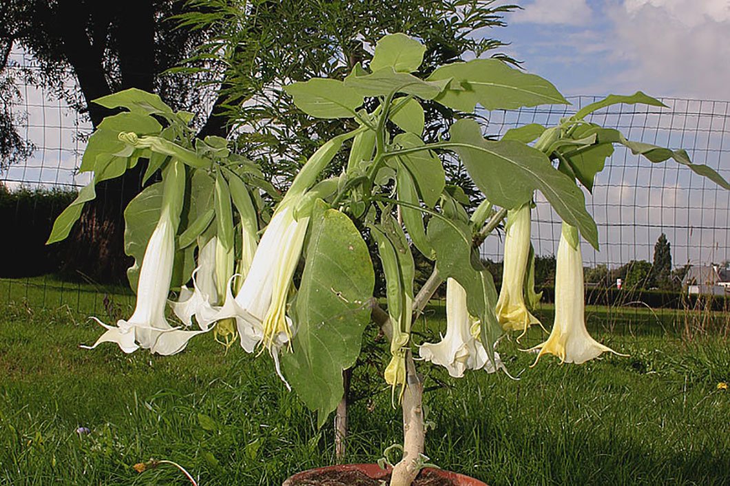 Les brugmansias, ou également appelés les trompettes d’anges, sont de très belles plantes avec des fleurs en forme de cloche. Les brugmansias sont appréciés en tant que plantes décoratives dans les jardins en raison de leurs fleurs élégantes. Le problème, c’est que toutes les parties de cette plante contiennent des niveaux dangereux de poison et peuvent être fatales si elles sont ingérées par l’homme ou les animaux. Les trompettes d’ange ont parfois été utilisées pour créer une drogue à usage récréatif, mais le risque de surdose est si élevé que ces utilisations ont souvent des conséquences mortelles.