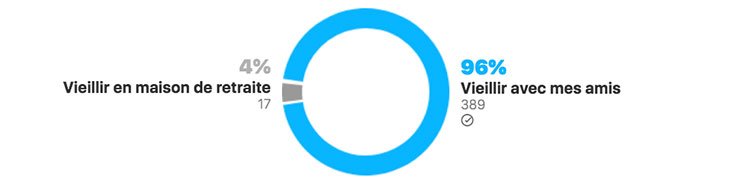 La possibilité de vieillir entre amis a séduit la majorité d’entre vous, puisque vous êtes 96 % à l’avoir choisie contre 4 % pour la maison de retraite.