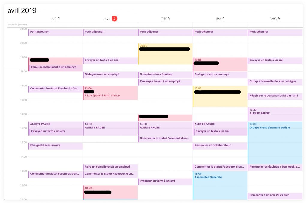 Je compense une grande partie de mes difficultés grâce à une technologie abondante qui m’accompagne à chaque étape de mon quotidien. Mon téléphone, mes applications et ma montre connectée sont des outils sans lesquels je ne parviendrais à avancer dans ma journée avec un tel niveau de réussite, selon des critères professionnels ou sociaux standards. J’organise ma vie très méticuleusement et je prévois toutes mes interactions longtemps à l’avance, de la plus simple à la plus complexe. Poser des événements sur mon calendrier réduit mon anxiété et paradoxalement, augmente ma résilience face aux imprévus. D’une certaine manière, je me prépare aussi à ce que ma journée ne soit pas telle que je l’ai prévu et je m’accorde des créneaux pour y faire face car mon manque de flexibilité et ma rigidité cognitive rendent ces situations extrêmement éprouvantes. Je consulte mon téléphone et je repasse point par point le contenu de ma journée, à la fois sur ce que je dois faire à mon travail mais également sur ce que je dois faire auprès de mes amis. J’ai des interfaces dédiées à mes différents besoins, je me sers de tableaux Trello pour gérer mes tâches personnelles et j’utilise mon calendrier pour anticiper toutes mes interactions dans la vie réelle. Je fais beaucoup d’effort pour exister dans ce monde, et parvenir à être correctement intégré socialement et professionnellement.