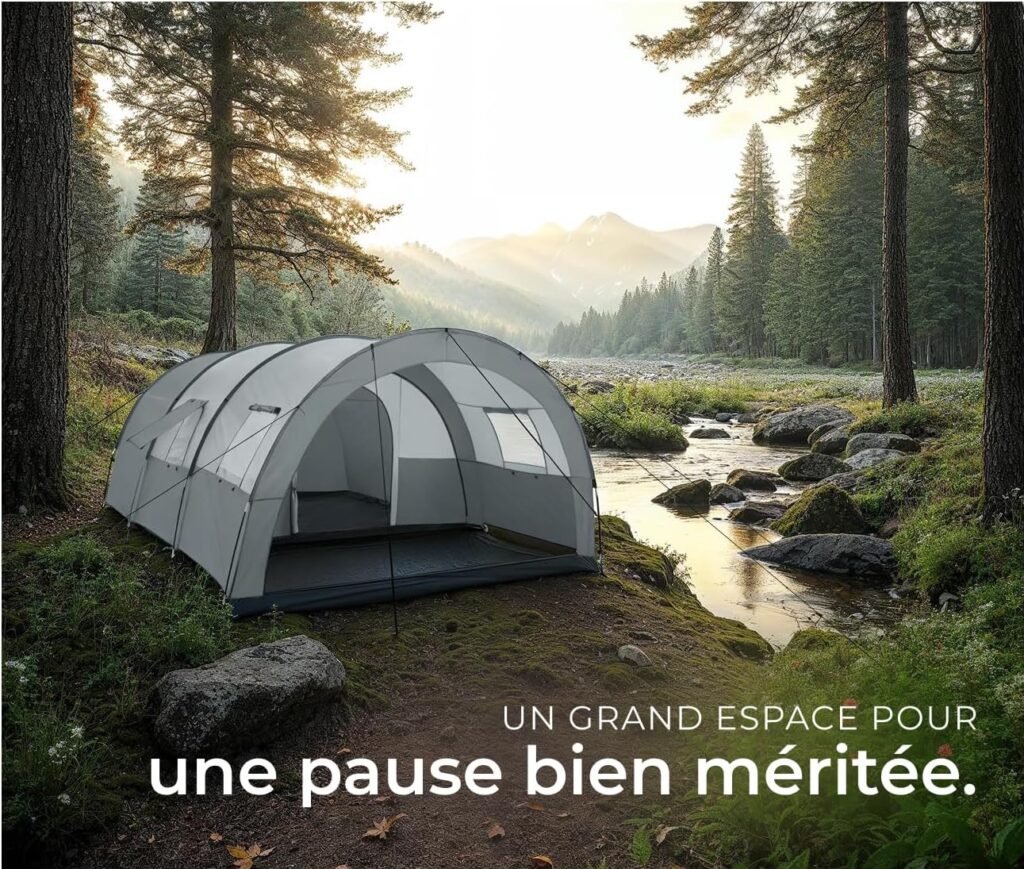 Que vous soyez amateur de camping ou randonneur souhaitant passer une nuit à la belle étoile, cette tente est l’accessoire idéal pour vous abriter. Elle peut accueillir jusqu’à 6 personnes et promet un confort optimal.