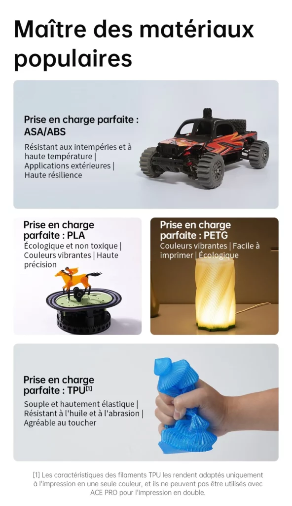 Pour les makers débutants, la machine propose une initiation à la couleur sans imposer un apprentissage complexe. Pour les utilisateurs plus expérimentés, la rapidité d’impression et la stabilité offrent un vrai gain de temps dans les projets en série.