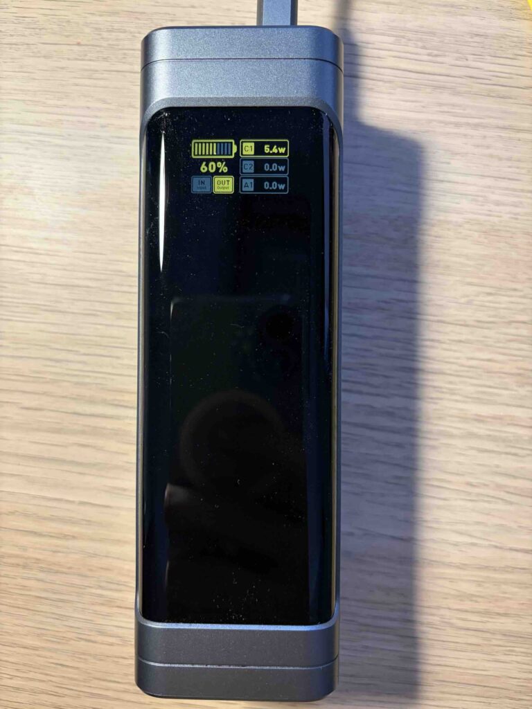 Là encore, le design fait la différence. Le jaune signature est bien présent, l’assemblage est impeccable, et l’écran LED en façade donne immédiatement des informations claires : niveau de batterie, puissance délivrée par port, répartition de la charge. C’est lisible, précis, et surtout très utile.