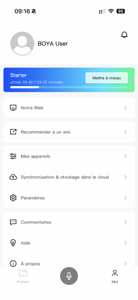 L’app BOYA Notra (disponible sur iOS et Android) ainsi que la version web constituent le centre névralgique de l’écosystème. Les enregistrements se synchronisent automatiquement dès que l’appareil est connecté à l’app, via Bluetooth ou Wi-Fi. Le transfert Wi-Fi rapide est particulièrement appréciable pour les fichiers longs.