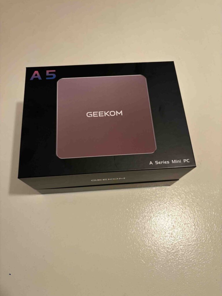 Le GEEKOM A5 2025 Edition arrive dans un emballage propre, soigné et bien protégé. Le contenu du pack est complet avec un support VESA, un câble HDMI, l’adaptateur secteur et la documentation. On retrouve immédiatement la signature esthétique de la marque : un mini PC compact, discret, qui peut s’intégrer dans n’importe quel environnement.