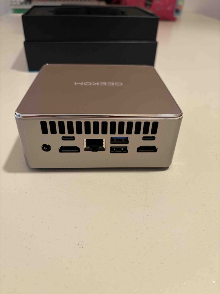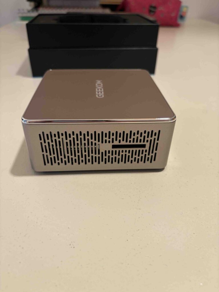 Autre détail appréciable : malgré sa taille réduite, la ventilation est discrète et la machine ne chauffe pas au point de devenir gênante, même lorsqu’on la pousse dans des tâches plus lourdes. On peut donc le placer dans un bureau, un meuble TV ou l’utiliser comme mini-serveur sans craindre de surchauffe.