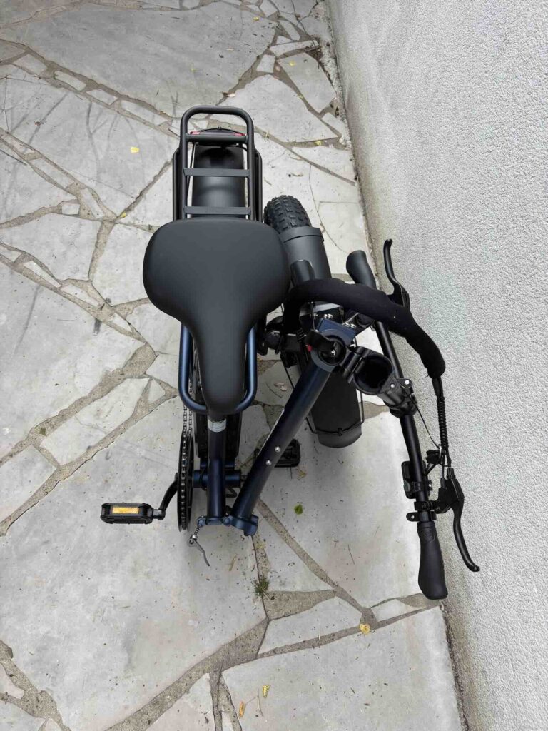 Dès les premiers instants, on est frappé par la robustesse du cadre. Compact une fois plié, il reste étonnamment équilibré une fois déployé. Contrairement à d’autres modèles qui imposent un enjambement compliqué, ici, le cadre convient aussi bien aux hommes qu’aux femmes, quel que soit le gabarit.