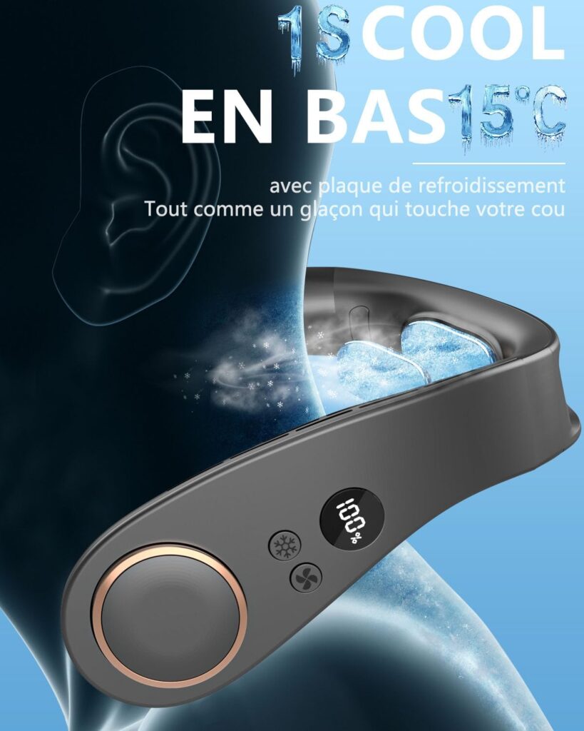Le produit est un tout nouveau genre de climatiseur qui se porte directement sur votre cou. Ce ventilateur de cou air froid avec un affichage LED intégré vous permet de vérifier le mode de rafraichissement, la vitesse du vent et la puissance restante de la batterie.